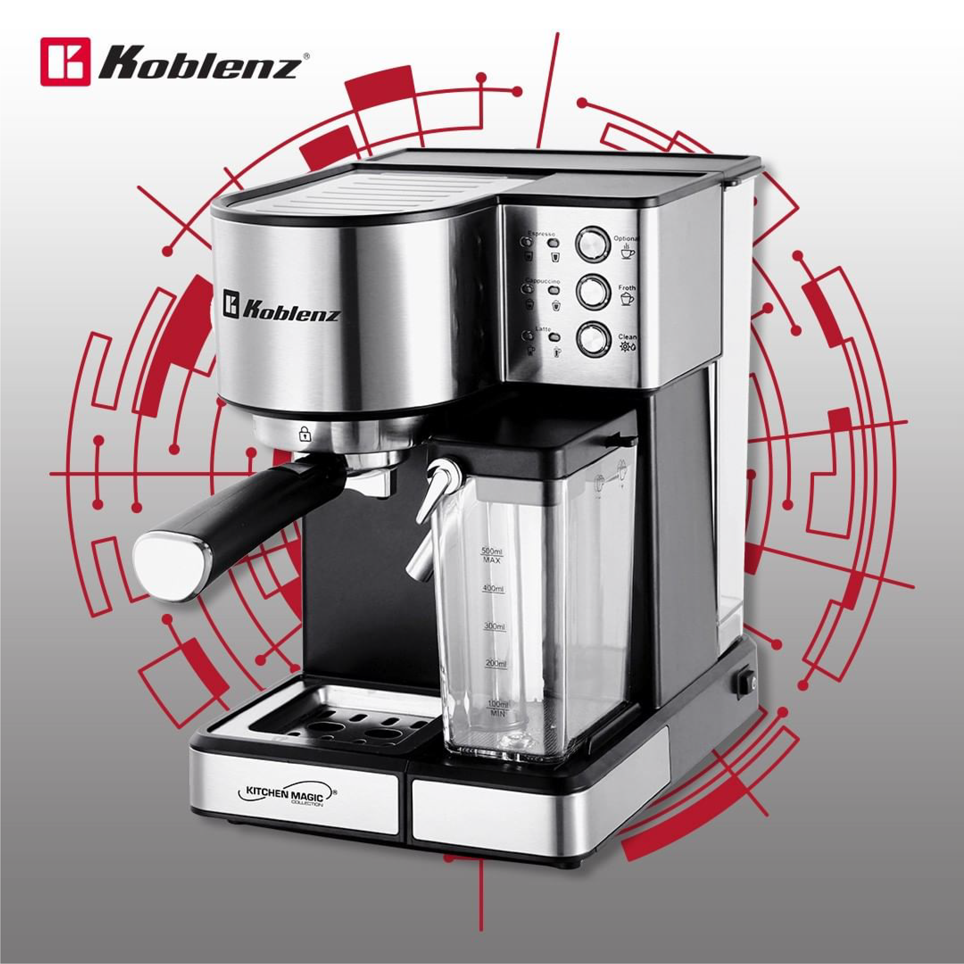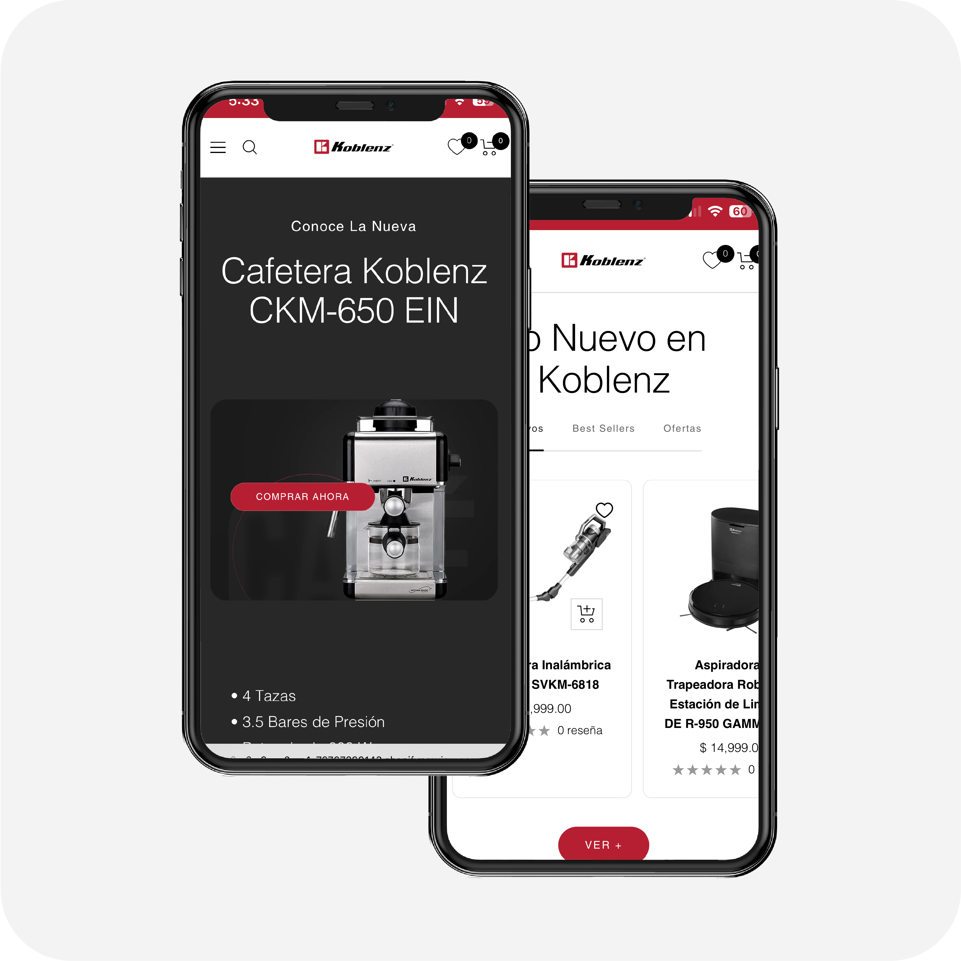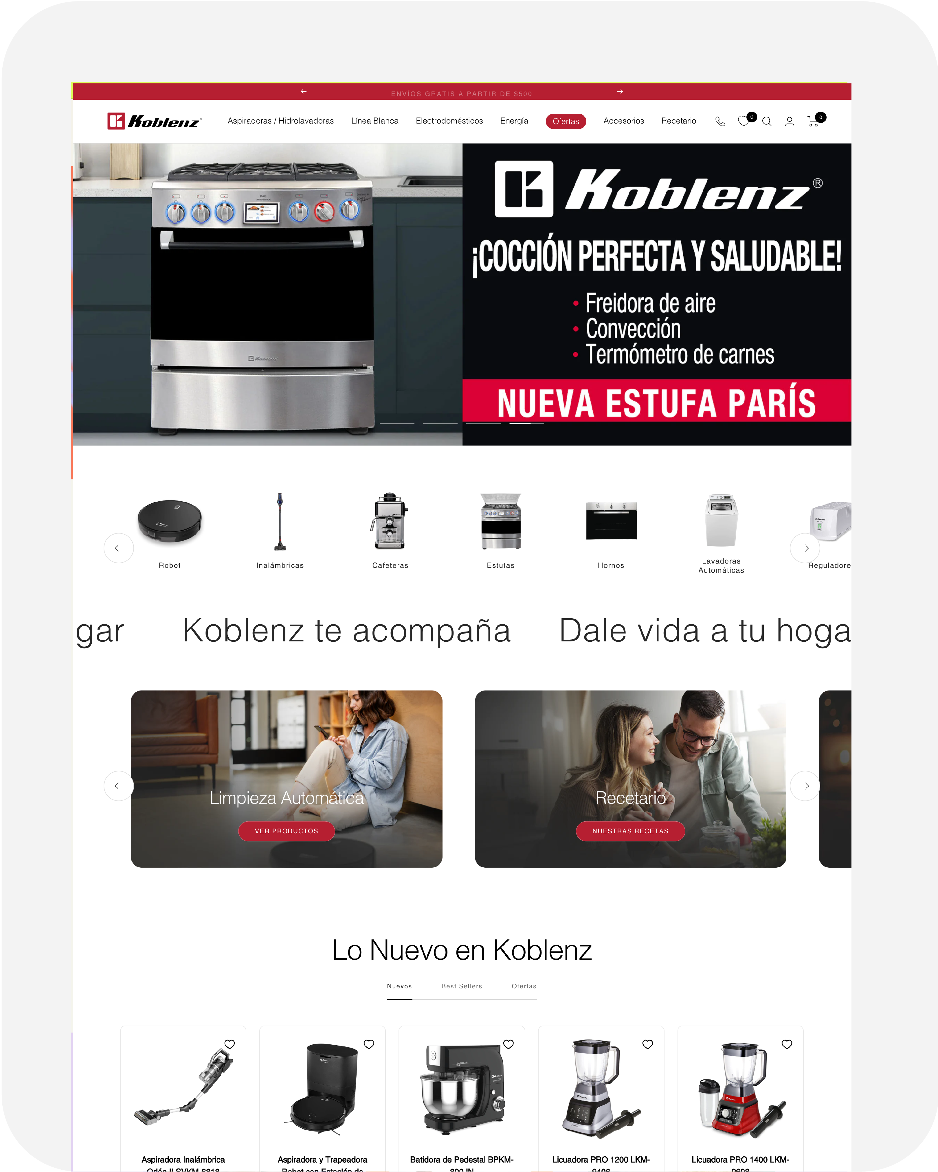 El diseño refleja la calidad y confiabilidad de los productos Koblenz, utilizando una estética moderna y profesional.